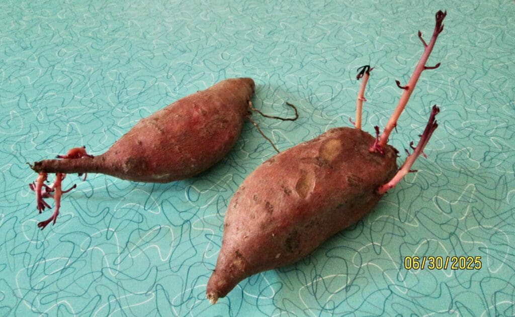 I’m trying to get back to eating real food that God made perfectly from the beginning. I recently watched a YouTuber (Eat Move Rest, YouTube channel) talk about the difference in living food versus, dead food. She held up a sweet potato that was still firm and ready to eat, but it was trying to grow another plant off the side of it. I happen to have two in that same condition, and plan to include them in a meal over the next few days. They are still firm and just need to be peeled for a healthy meal.