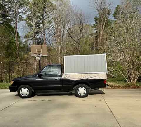We were able to get the garden shed moved by lifting it onto the back of my husband’s truck and driving it as close as possible to where we wanted to place it. Then lifting it over the fence into the garden.