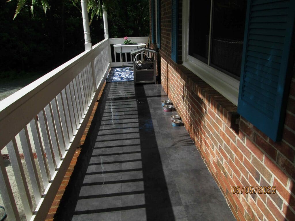 I thought… I guess I need to get some paint, repaint the chairs, toss the cushions and buy more. But what would I be doing it for? No person can sit in a filthy chair full of cat hair. Then that word popped into my head… dominion. I decided I was not going to spend another dime on those chairs for the cats. In fact, the chairs and the cushions all needed to go. I have four beds for four cats on the front porch and that is all we need. The porch is so much easier to hose off. Here is a picture after hosing it off this morning.